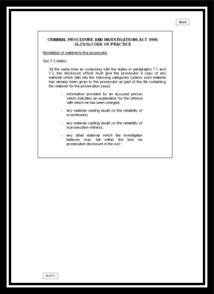 7.3 of the Code of Practice - To provide the CPS with the disclosure officer’s certification