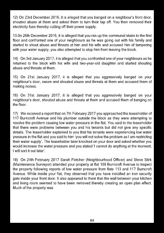 12) On 23rd December 2016, it is alleged that you banged on a neighbour’s front door,