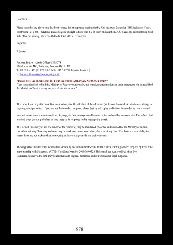 Please note that the above case has been relisted for a reopening hearing on the 30th instant at Lavender Hill Magistrates Court,