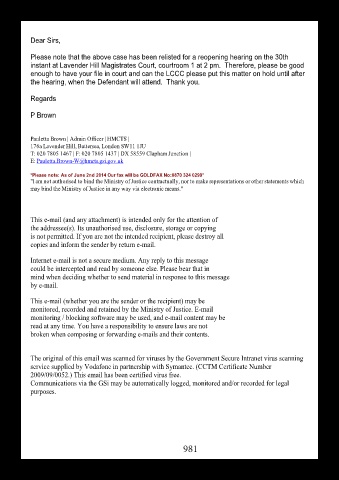 instant at Lavender Hill Magistrates Court, courtroom 1 at 2 pm. Therefore, please be good