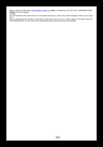 Can you forward me the email sent to the court and the Essex po ice officer, did you also manage to chance up the Legal