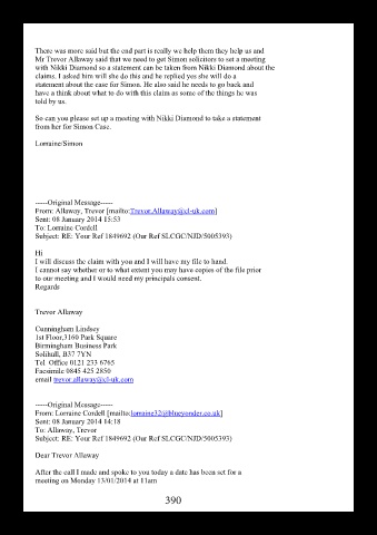 Mr Trevor Allaway said that we need to get Simon solicitors to set a meeting