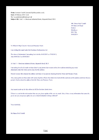 Person’s names who attended the address and times of any person attending from the Noise and Nuisance Team.