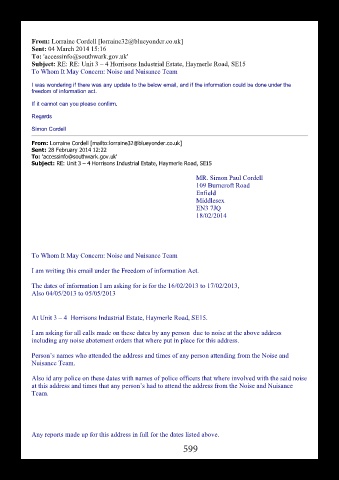 at this address and times that any person’s had to attend the address from the Noise and Nuisance