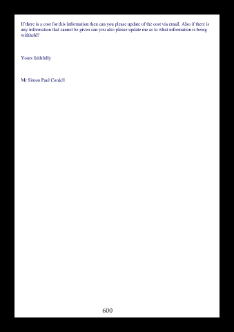 If there is a cost for this information then can you please update of the cost via email. Also if there is
