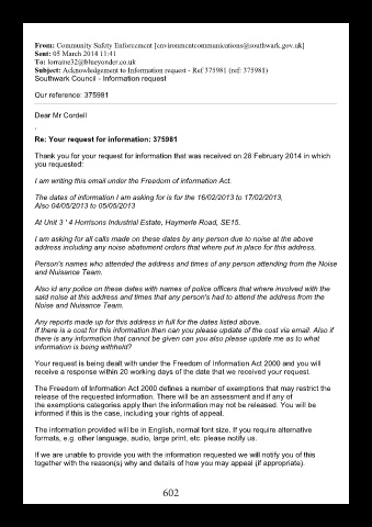 From: Community Safety Enforcement [environmentcommunications@southwark.gov.uk]