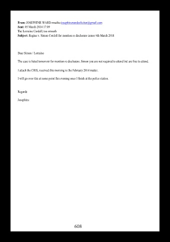 Subject: Regina v. Simon Cordell for mention re disclosure issues 6th March 2014