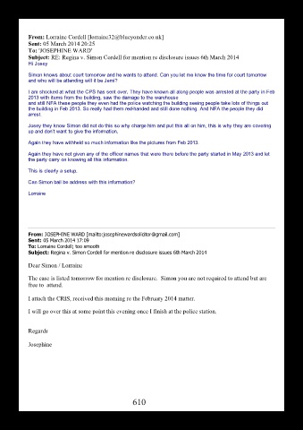 Subject: Regina v. Simon Cordell for mention re disclosure issues 6th March 2014