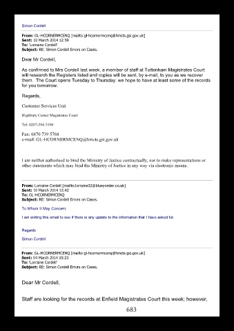As confirmed to Mrs Cordell last week, a member of staff at Tottenham Magistrates Court