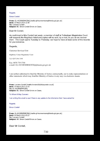 As confirmed to Mrs Cordell last week, a member of staff at Tottenham Magistrates Court