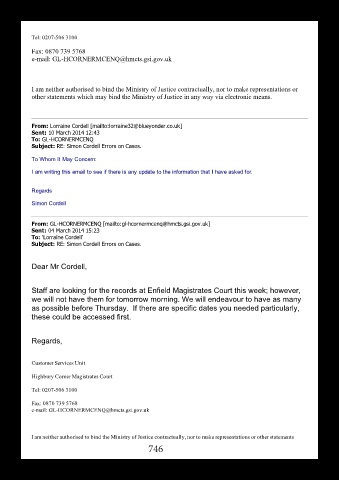 I am neither authorised to bind the Ministry of Justice contractually, nor to make representations or other statements