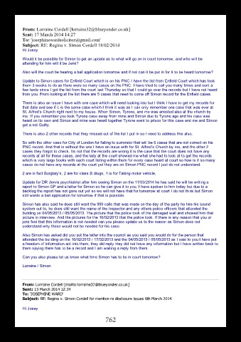 Update to Simon cases for Enfield Court which is on his PNC I have the list from Enfield Court which has took