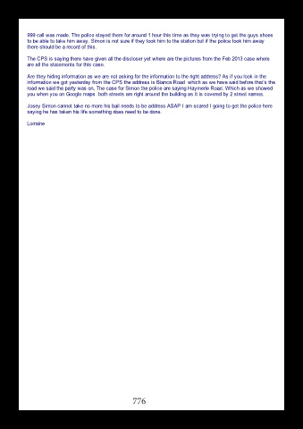 999 call was made. The police stayed there for around 1 hour this time as they was trying to get the guys shoes