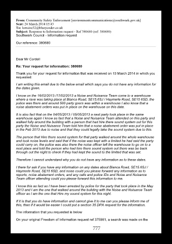 Southwark Council Information request