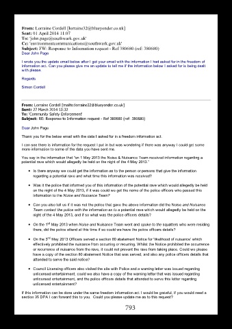 You say in the information that “on 1 May 2013 the Noise & Nuisance Team received information regarding a