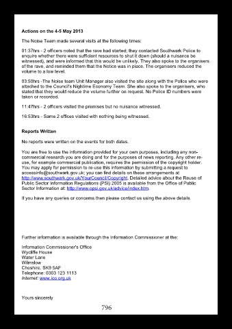 03:50hrs The Noise team Unit Manager also visited the site along with the Police who were