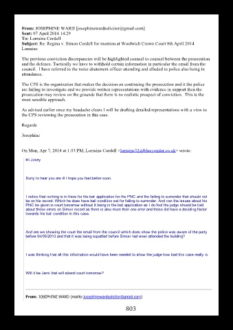 Subject: Re: Regina v. Simon Cordell for mention at Woolwich Crown Court 8th April 2014