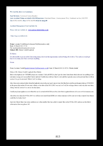 Could you please update us as to when this can be sorted with KGM as to the claim that is against Simon so he can sort his insurance out.