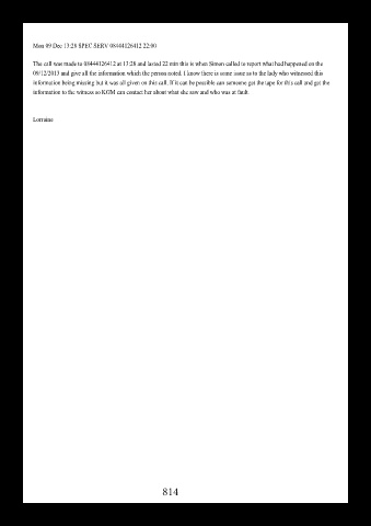 The call was made to 08444126412 at 13:28 and lasted 22 min this is when Simon called to report what had happened on the