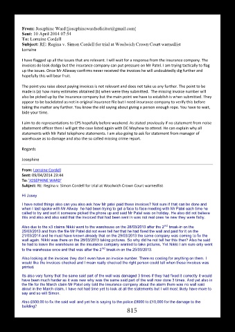 invoices do look dodgy but the insurance company can put pressure on Mr Patel. I am trying tactically to flag
