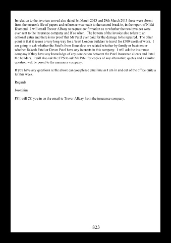 In relation to the invoices served also dated 1st March 2013 and 29th March 2013 these were absent