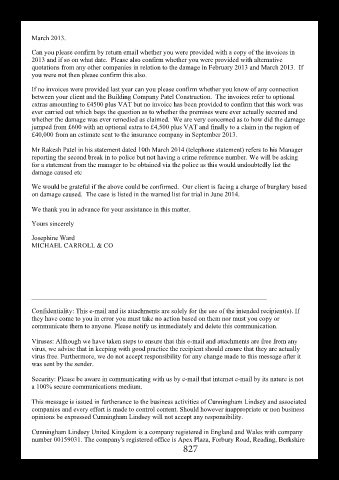 extras amounting to £4500 plus VAT but no invoice has been provided to confirm that this work was