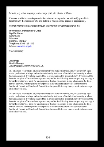 Southwark Council and Southwark Council is not responsible for any changes made to the message