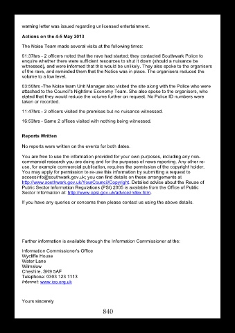 of the rave, and reminded them that the Notice was in place. The organisers reduced the