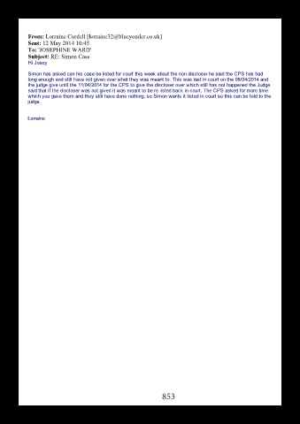 Simon has asked can his case be listed for court this week about the non discloser he said the CPS has had