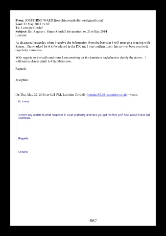 Subject: Re: Regina v. Simon Cordell for mention on 21st May 2014