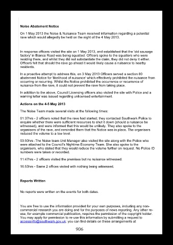 organisers of the rave, and reminded them that the Notice was in place. The organisers
