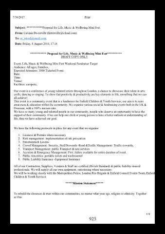 *********** Proposal for Life, Music & Wellbeing Mini Fest**********