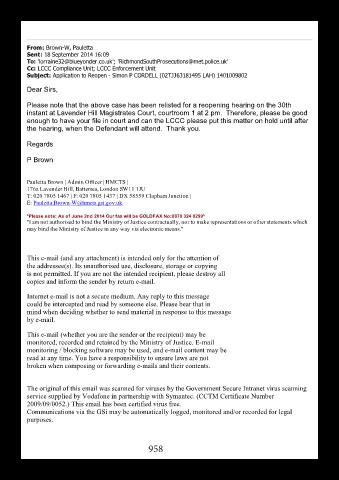 To: 'lorraine32@blueyonder.co.uk'; 'RichmondSouthProsecutions@met.police.uk'