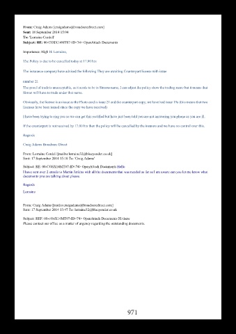 If the counterpart is not received by 17.00 hrs then the policy will be cancelled by the insurers and we have no control over this.