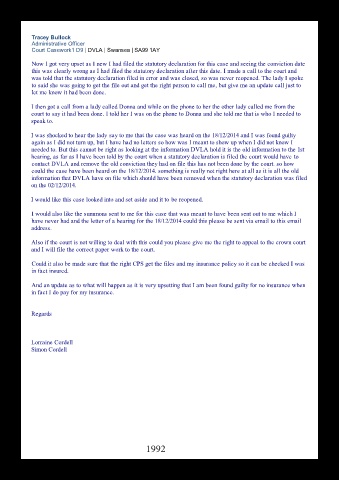 I was shocked to hear the lady say to me that the case was heard on the 18/12/2014 and I was found guilty