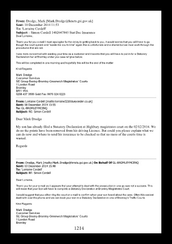 Thank you for your e­mail as it appears that your attempt to deal with the prosecution in one go was not a success. This
