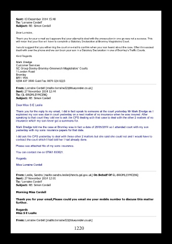 Mark Dredge told me the case at Bromley was in fact a date of 20/05/2014 so I attended court with my son