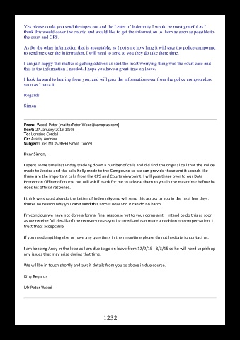 I look forward to hearing from you, and will pass the information over from the police compound as