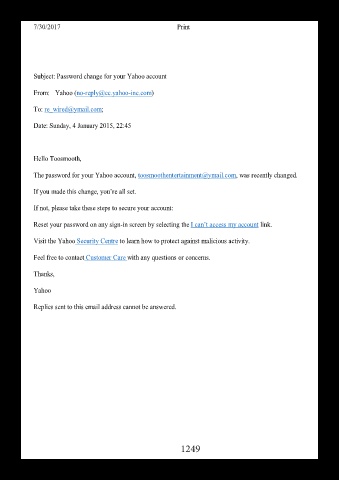 The password for your Yahoo account, toosmoothentertainment@ymail.com, was recently changed.