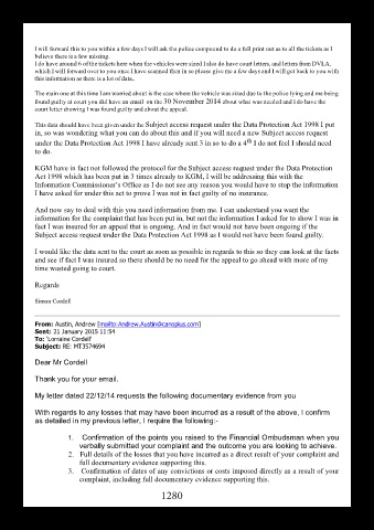 found guilty at court you did have an email on the 30 November 2014 about what was needed and I do have the