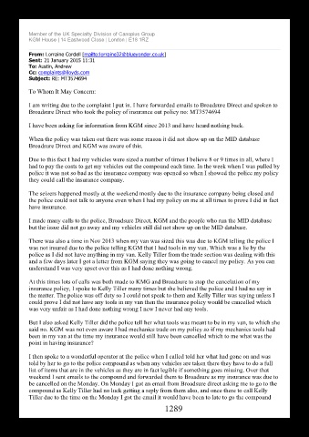 I am writing due to the complaint I put in. I have forwarded emails to Broadsure Direct and spoken to