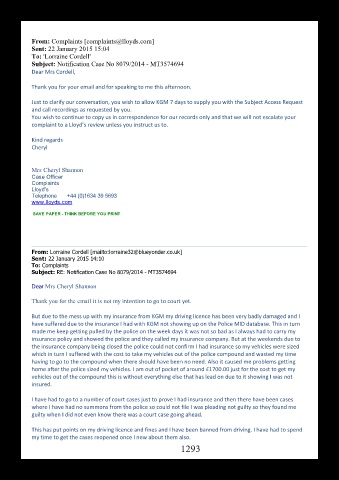 But due to the mess up with my insurance from KGM my driving licence has been very badly damaged and I