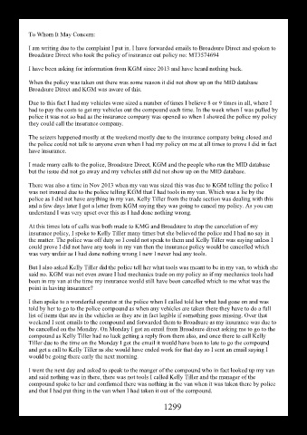 insurance policy, I spoke to Kelly Tiller many times but she believed the police and I had no say in