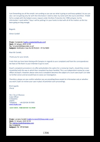 I note that you have been liaising with Canopius in regards to your complaint and from the correspondence