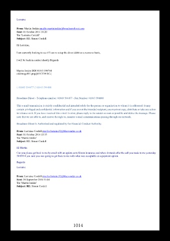 Can you please get back to me by email with an update as to Simon insurance and where it stands after the call you made to me yesterday