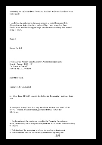 1. Confirmation of the points you raised to the Financial Ombudsman