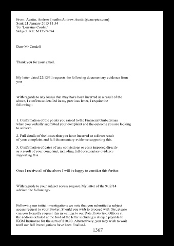 1. Confirmation of the points you raised to the Financial Ombudsman