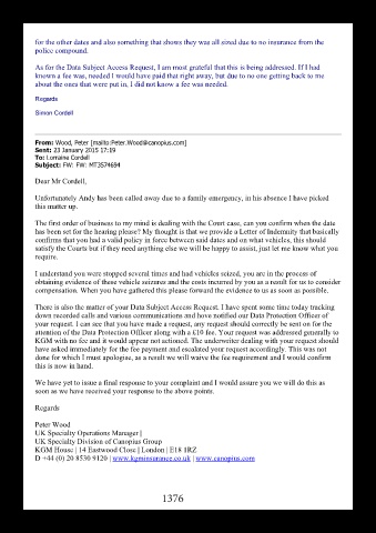 There is also the matter of your Data Subject Access Request. I have spent some time today tracking