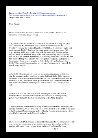 14/11/2013 where the police officer told KGM I had tools in my van to void