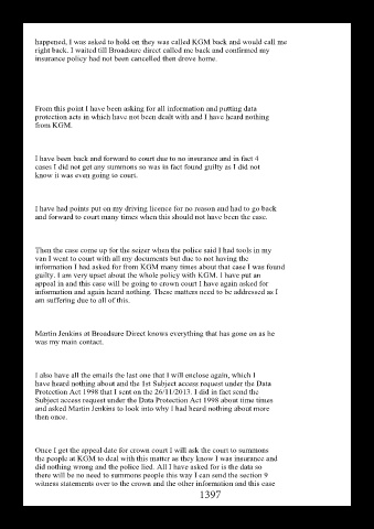 Protection Act 1998 that I sent on the 26/11/2013. I did in fact send the